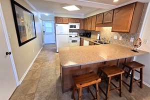 • Kitchen & Dining: Fully stocked kitchen, refrigerator, microwave, stove, oven, coffee maker, toaster, wine glasses, blender, dishes & cookware
